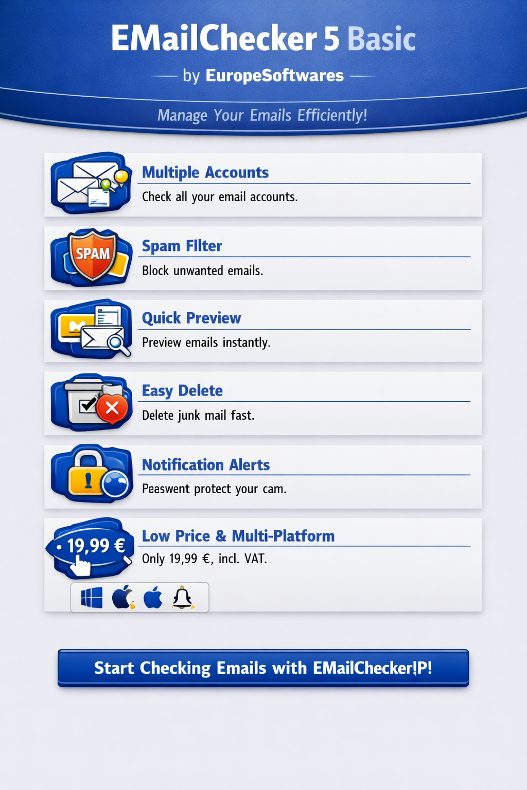 The EmailCheckerBasic software, developed by EuropeSoftwares, secures your email.